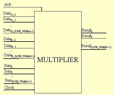 | Multiplicand | Vector, LPM_WidthA wide | |||