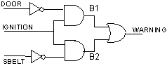 Warning = Ignition_on AND ( Door_open  OR Seatbelt_off)