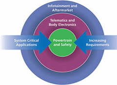 AEC-Q100, Grade 1 qualification now enables FPGA technology to move beyond in-cabin telematics and infotainment applications into system-critical applications such as powertrain, engine control modules, and safety systems. Automotive ProASIC3 devices are ideally suited to address the changing and emerging standards within these system-critical applications.