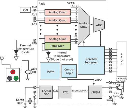 To complement these high-end solutions and address the needs of embedded applications, Actel has released a reference design that enables intelligent, power-efficient system and power management implementations starting at $1.20. This low price is reached through the dramatic levels of integration made possible by the Fusion device, which reduces system cost and board space.