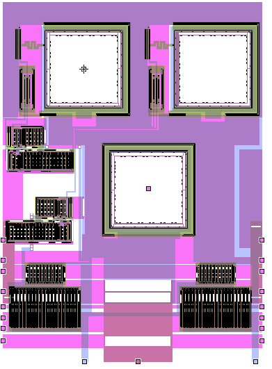Layout of the Black Jack Dealer example with pads in scn12hp technology.
