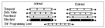 The RASSP Taxonomy specifies each of the first four axes from both an internal and external viewpoint. Consequently, the taxonomy effectively contains eight attributes: