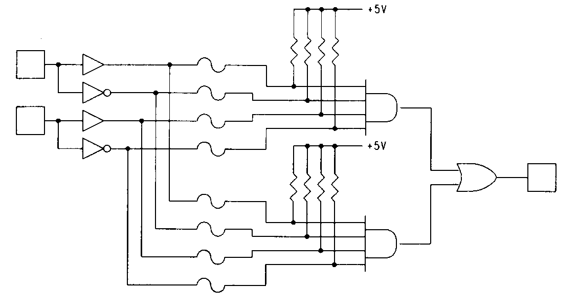 A simplified programmable logic array composed of two inputs and one output is shown in Figure 1.